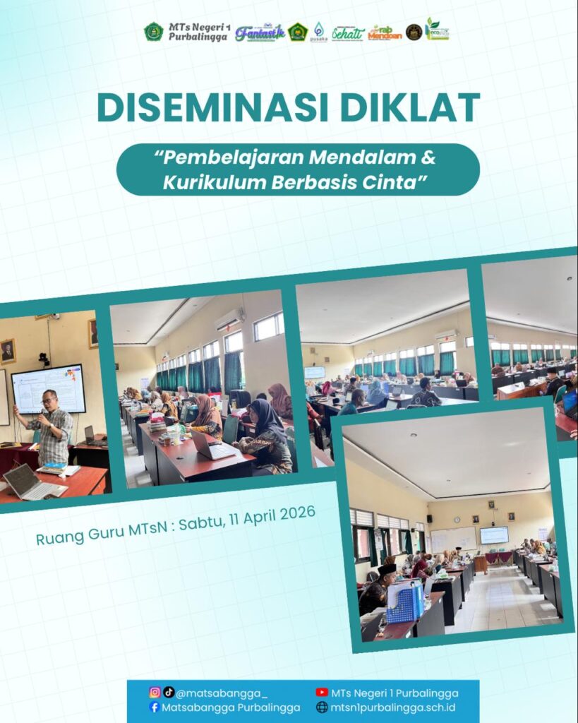 Purbalingga – MTsN 1 Purbalingga menyelenggarakan kegiatan Diseminasi Diklat Kurikulum PM dan KBC pada Sabtu, 11 April 2026. Kegiatan ini dilaksanakan mulai pukul 13.00 WIB hingga selesai, bertempat di ruang guru MTsN 1 Purbalingga. Diseminasi ini menghadirkan narasumber Azhar Dwinanto, M.Pd guru IPS sekaligus Waka kurikulum MTsN 1 Purbalingga. Beliau menyampaikan materi terkait implementasi Kurikulum […]